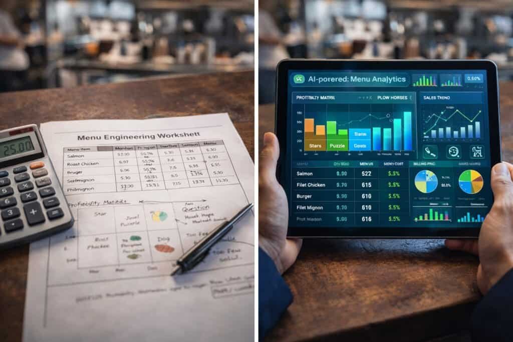 Traditional menu engineering uses a simple popularity vs. profitability matrix. AI goes deeper, considering: